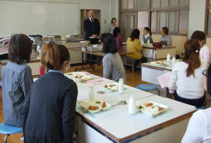 PTA主催の給食試食会、料理講習会を家庭科室で開催しました。