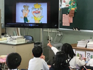 委員会の子どもたちが紙芝居をして、それを各学級