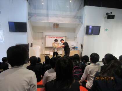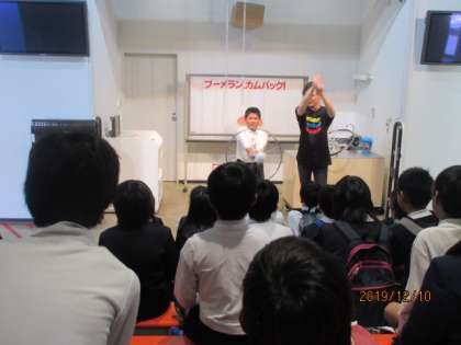 午後1時からは「サイエンスショー」がありました。ブーメランや紙ひこうき等について学びました。先生も実験に参加しました。