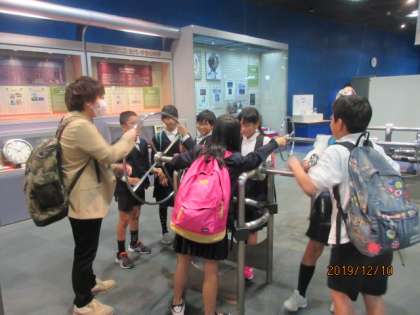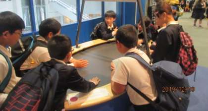 お弁当は、館内の多目的室で食べました。食べ終わった後は、展示場での体験の続きです。