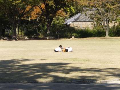 芝生の上でゴロゴロしています。帰りも車中のマナーをしっかりと守り、安全に帰ってきました。