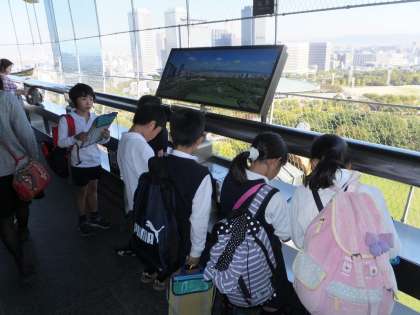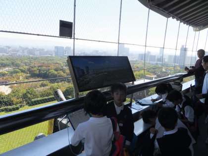 大阪城は思っていたより高く、景色がよく見えていたので、子どもたちはいつまでも大阪の街を眺めていました。