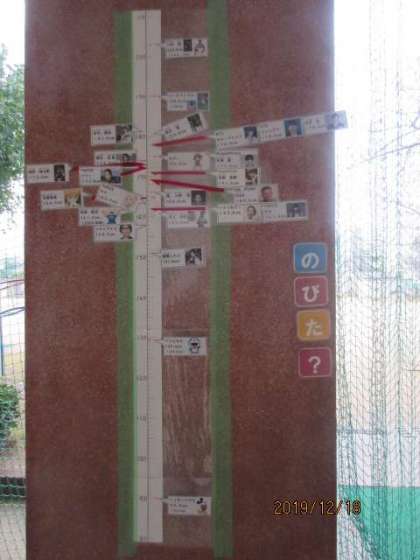 身長の掲示です。有名人と比べて、自分の成長を実感