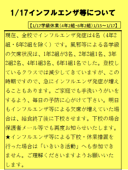 ★インフルエンザ等による下校・休業措置を行った場合は「いきいき活動」へも参加できません。ご理解くださいますようお願いいたします。
