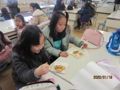 保護者の皆様、各町会、地域の皆様、今日は、子ども達のために朝早くからありがとうございました。天気もよく、過ごしやすい天候の中、もちつきの体験ができました。
