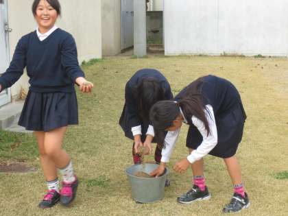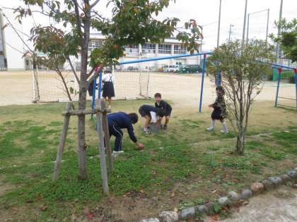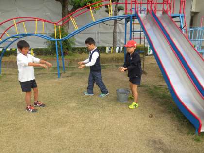 鉄棒や遊具の下にも冬芝の種をまきました。