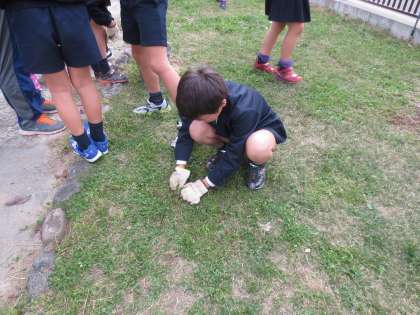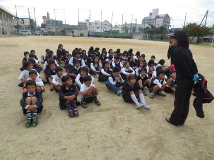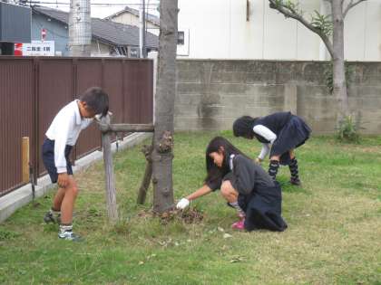 昨日、4年生の子どもたちが、芝生の雑草をとり、砂とともに冬芝の種をまく作業に協力してくれました。冬芝は2週間ほどで発芽します。