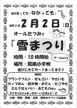 模擬店(フランクフルト・ぜんざい・やきいも・カップめん・飲み物・おでん・たこやき・ミルクせんべい・あてもの等々)や、子どもも大人もあったか〜い足湯があります。