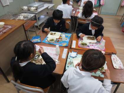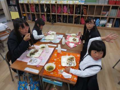 他の学年でも給食交流をしています。次回に掲載いたします。