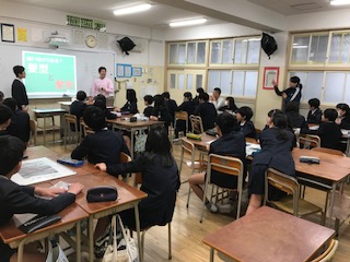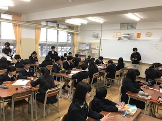 今日の午後、6年生は、新巽中学校へ体験授業に