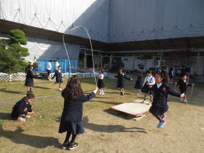運動場では「なわとび」が盛んになってきました。楽しく元気にチャレンジしていました。