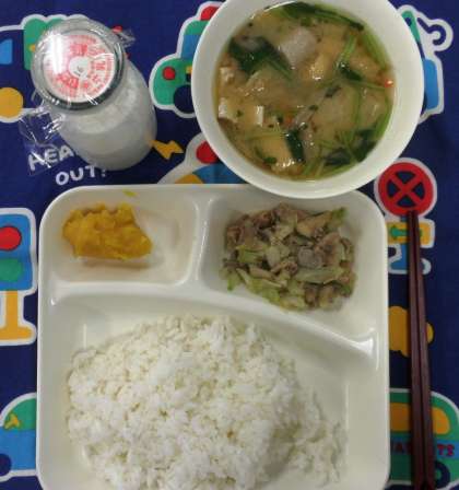 豚肉とまいたけのいためもの、つみれ汁、かぼちゃういろう、
