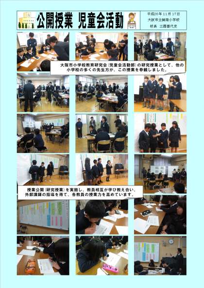 今回は大阪市小学校教育研究会(児童会活動部)の研究授業として実施したので、他の小学校の多くの先生方がこの授業を参観しています。