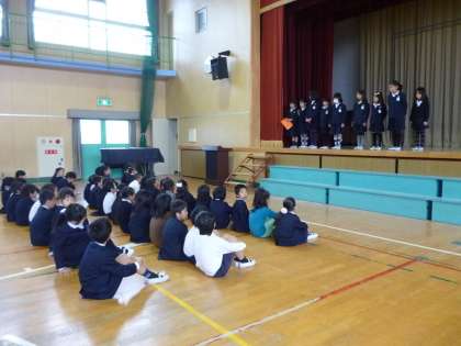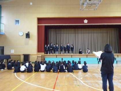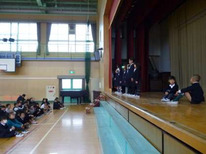 2週間後の11/30(日)に学習発表会が行われます。講堂の舞台の上からでも、大きくはっきりとした声が出ていました。