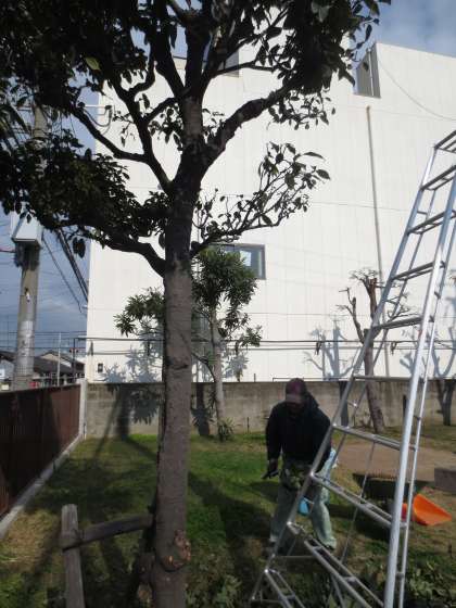 管理作業員さんが、学校のアラカシの木を選定していました。下には沢山のドングリが落ちていました。休み時間に子どもたちが見つけるようにと・・・