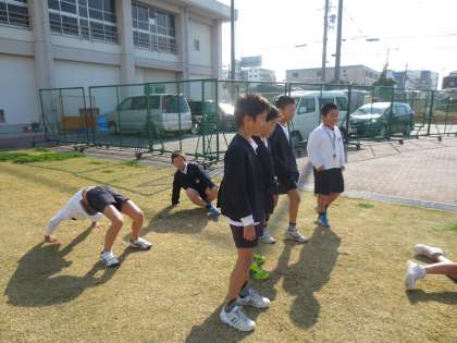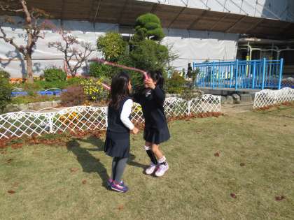 芝生の上で縄跳びをしたり、ブリッジをしたりして遊んでいました。寒くなってきましたが、子どもたちは元気に運動場で遊んでいます。