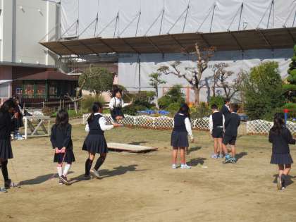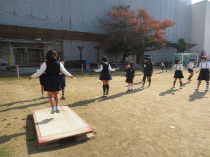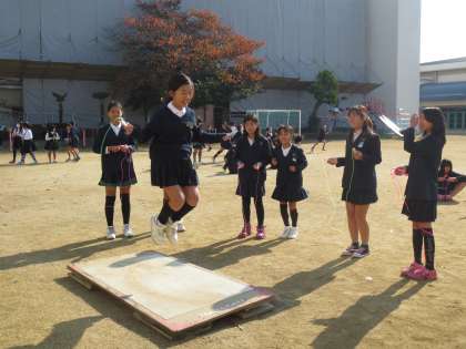 ジャンビングボードで「二重跳び」をすると簡単にできるそうです。「三重跳び」にもチャレンジする子どもがいました。