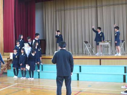 テーマ「三人の旅人たち」しっかりと台詞を覚え、大きな声で話せていました。何やら楽しそうな発表になりそうですよ。
