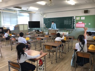 今日は3年生の登校日です。分散登校となりましたが、久しぶりに登校してきた子どもたちが、正門で「おはようございます」と元気よく挨拶をしてくれました。