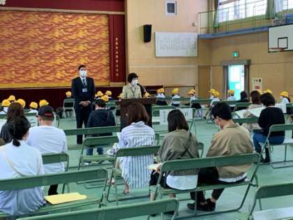 1年生に関わる教員の紹介、学年の先生の話がありました。
