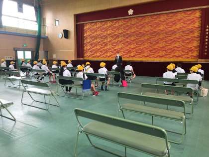 6年生の子どもたちには、下校前には講堂で、校長先生から「来週から先行して授業が再開されることの意義、最高学年・最終学年として卒業までの一日一日を大切にしてほしい、自身の行動に責任を持ち自信と誇りを持って最上級生として頑張ってほしい」という話がありました。
