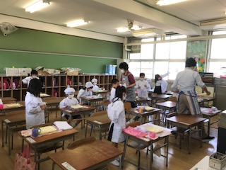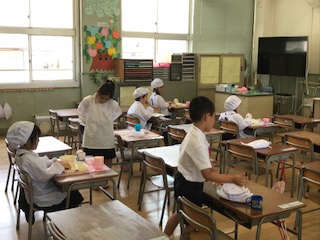 先生の指示で、準備や手洗いをしっかりとしてから「いただきます」をします。