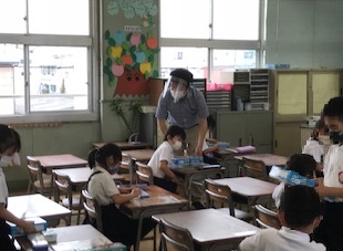 児童向けは後日届けられます。授業時間においては担任等が必要に応じて装着を指導します。