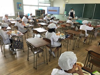 給食開始から3日目、スムーズに準備ができるようになってきています。1年生も少しずつ慣れてきました。