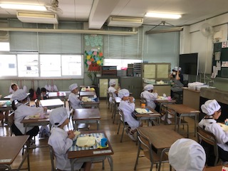 前を向き、会話を控え、お行儀よく食事をしていました。