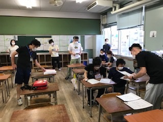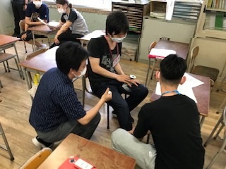 食物アレルギーに関する基礎知識を確認した後、アナフィラキシーショックが起きた時の緊急対応やエピペンの使用をロールプレイも交えながら研修しました。