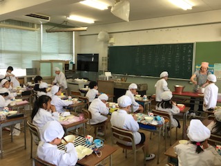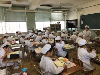 今日初めて学級全員がそろって食べました。