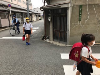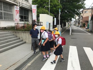 お巡りさんが、通学路周辺を巡回してくれていました。