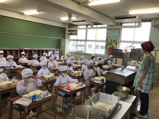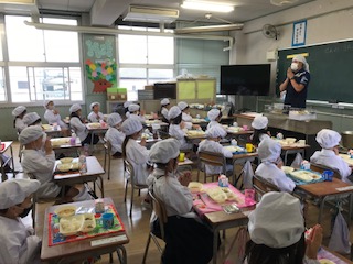 1年生の給食時間のようすです。