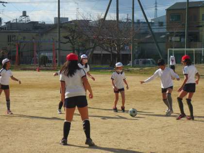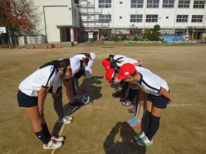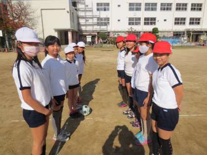 女子も挨拶をしてミニゲームをしています。キック力がある児童がいました。