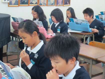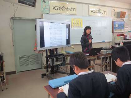 音楽科の学習です。「キリマンジェロ」曲想を生かして合奏をする練習をしていました。真剣に練習をしていました。