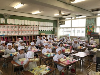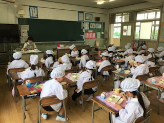 1年生の給食時間のようすです。