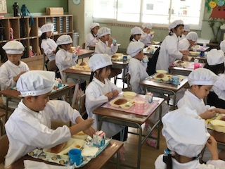 1年生の給食時間のようすです。