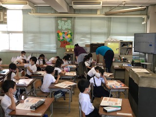 生活科では、見つけたものを絵に描いてみんなの前で発表しています。