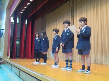 集会委員会の児童が「イントロドン」のゲームをしてくれました。上手にわかりやすく説明をしていました。