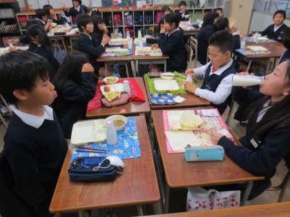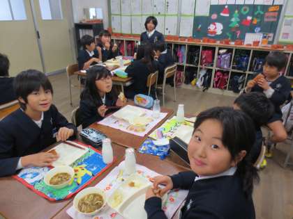4年2組の楽しい給食時間です。