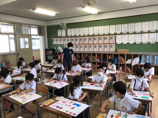 図工の学習では、前の続きで「かきたいものなあに」に子どもたちが取り組んでいました。