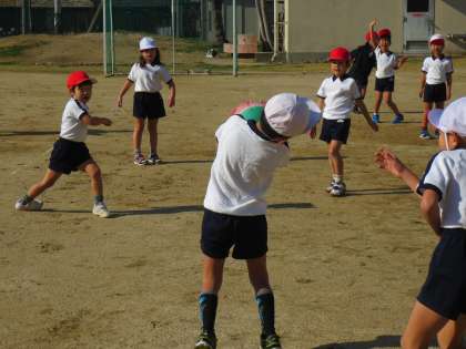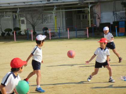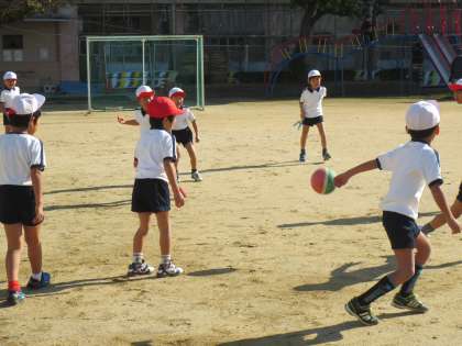 寒くなりましたが、低学年の子どもたちが元気にドッジボールをしています。とてもよい動きがあり感心しました。