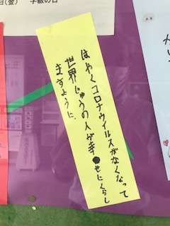 「はやくコロナウィルスがなくなって 世界中の人が幸せにくらせますように」