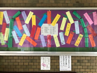 玄関掲示です。今月は4年生が担当。4年生の子どもたちのたくさんの願いが綴られています。