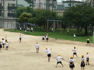 ドッジボール・鬼ごっこ・てつぼう・うんてい・一輪車・のぼりぼう・すべり台・なわとび……と思い思いに、子どもたちが楽しそうに遊んでいます。