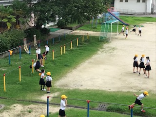 ほぼ一週間ぶりでしょうか。雨が続き、外遊びができませんでしたが、久々に運動場に子どもたちの元気いっぱいの姿が戻ってきました。