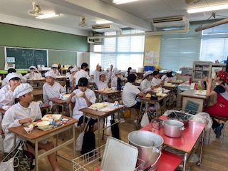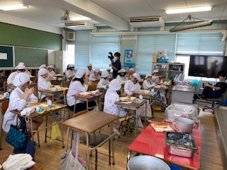 今日は、卒業アルバム用の写真撮影で、写真屋さんが給食風景を撮っていました。
