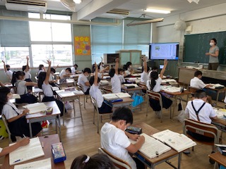 国語科では、「カタカナで書くことば」、算数科では、「数のしくみ」について子どもたちが考えていました。