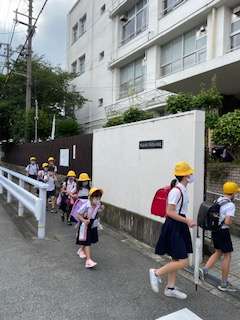 せみ時雨の降り注ぐなか、子どもたちが登校してきました。一日の始まりです。「おはようございます」