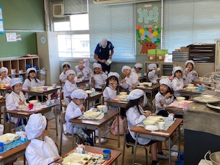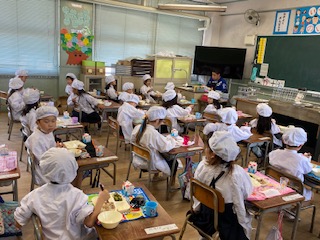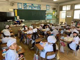 1年生(2組)の給食時間のようすです。
